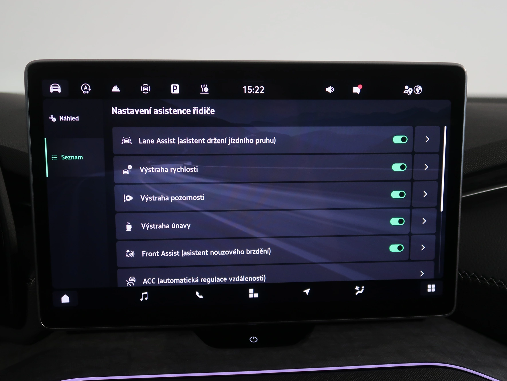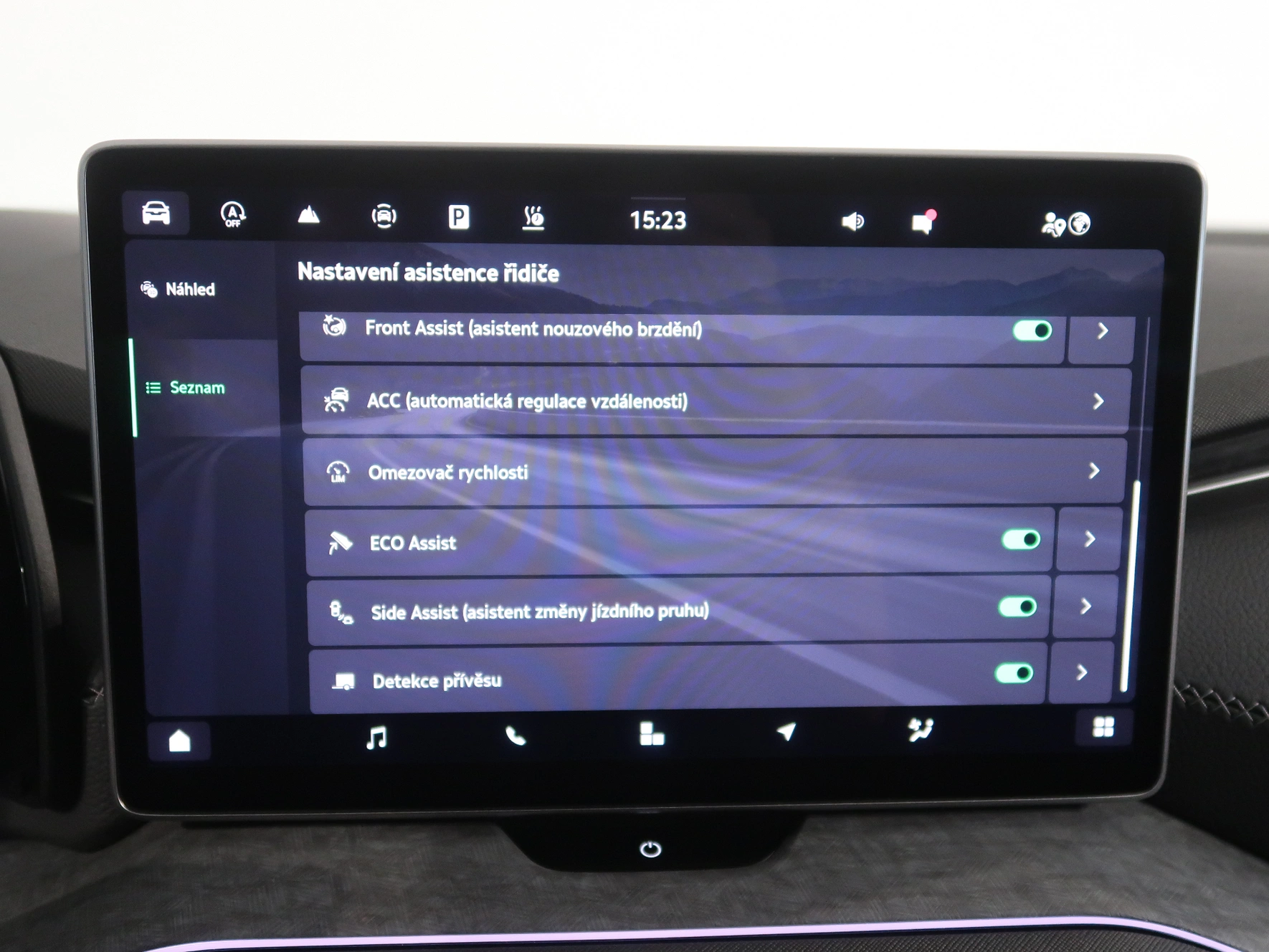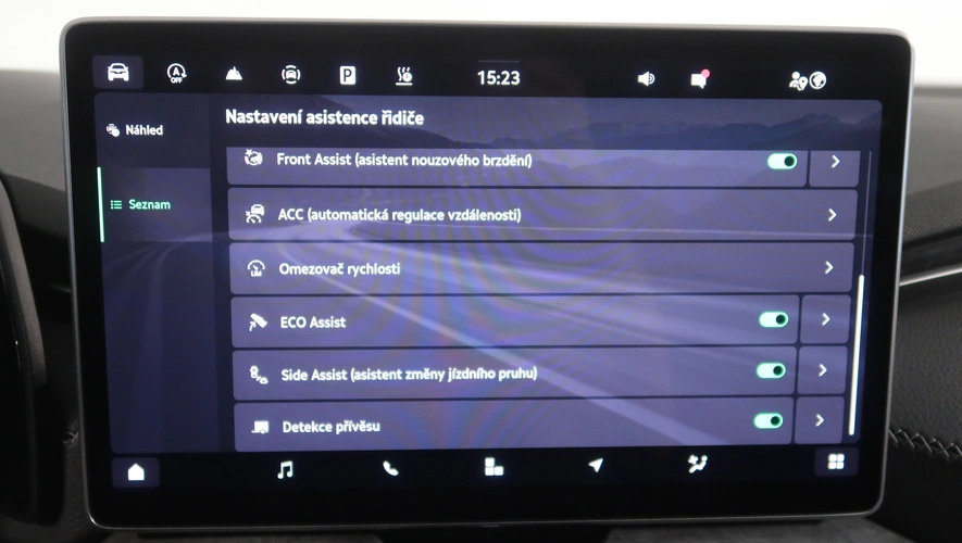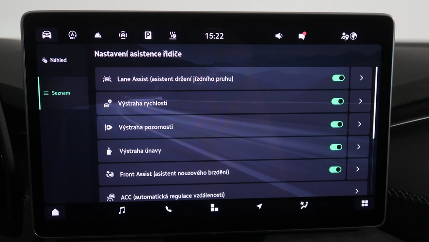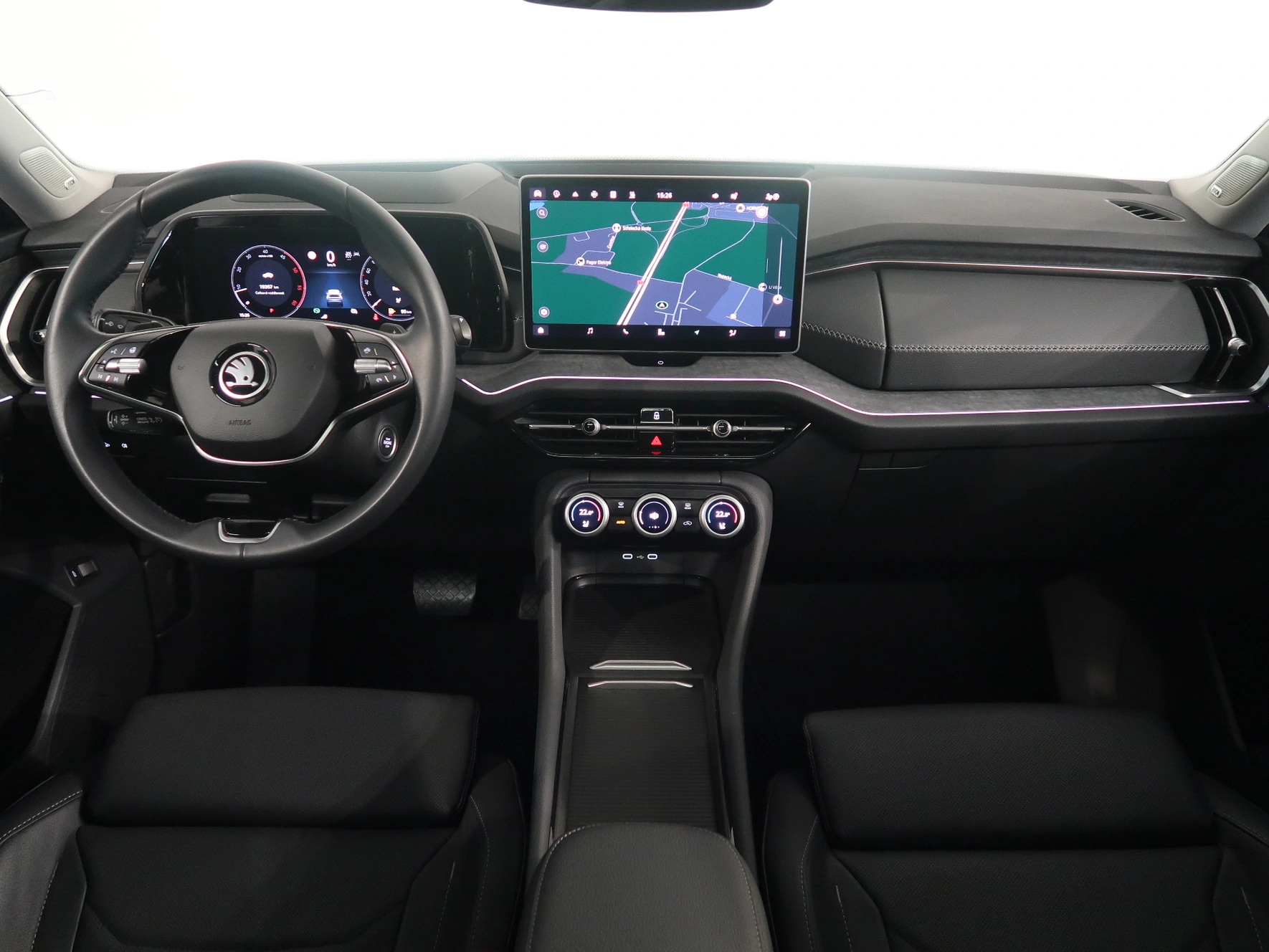 nastavitelný volant, střešní nosič, dešťový senzor, multifunkční volant, zadní stěrač s ostřikovačem, metalický lak, senzor světel, ukazatel vnější teploty, bezklíčové odemykání, kontrola tlaku v pneu, Isofix, loketní opěrka zadní, Maxi Dot, malý kožený paket, dělená zadní sedadla, startování tlačítkem, Parkovací asistent, Adaptivní tempomat, El. sklopná zrcátka, Bluetooth, Start-stop systém, blind spot detect - kontrola mrtvého úhlu, parkovací kamera, USB, ALU kola, LED denní svícení, Klimatizace automatická dvouzónová, Digitální přístrojový štít, Asistent vyparkování, Volba jízdního režimu, Omezovač rychlosti, Hlasové ovládání, Airbag řidiče a spolujezdce, Parkovací senzory vepředu, Front assist/Nouzové brzdění, Parkovací brzda el. mech., Ambientní osvětlení, Rezervní kolo, Airbag hlavový, Airbag boční, vyhřívaná sedadla, el. vyhřívané přední sklo, natáčecí světlomety, Asistent rozjezdu do kopce, Řazení na volantu, lane assist - asistent kontroly jízdy v jízdním pruhu, Asistent dálkových světel, Asistent rozpoznání únavy řidiče, Adaptivní tempomat 210 km/h, Autohold, Bezdrátové nabíjení mobilního telefonu, Masážní sedadlo řidiče, Zatmavovací zrcátko - vnitřní, Sun set, Vyhřívané trysky ostřikovače čel. okna, smart link, vyhřívaný volant, LED hlavní světlomety, Nabíjecí USB vzadu, autoalarm, střešní okno, sound systém s více reproduktory, El. ovládaná přední sedadla, El. ovládané 5. dveře, Virtuální pedál, Adaptivní podvozek/ DCC, Nouzové volání, Masážní sedadla, Ventilovaná sedadla, Zatmavovací zrcátko - všechny, Rozpoznání dopravních značek, ostřikovače světlometů, airbagy boční zadní, Roletky zadních oken, vyhřívání sedadel vzadu, tažné zařízení, nezávislé topení, Area View 360 degree, MATRIX LED světlomety, Tažné zařízení sklopné, Klimatizace automatická vícezónová, Bezdrátový Smartlink – zrcadlení mobilního telefonu, Asistent jízdy s přívěsem, ISOFIX na sedadle spolujezdce, pohon všech kol, Airbag středový, Head Up displej, Škoda Connect, panoramatická střecha