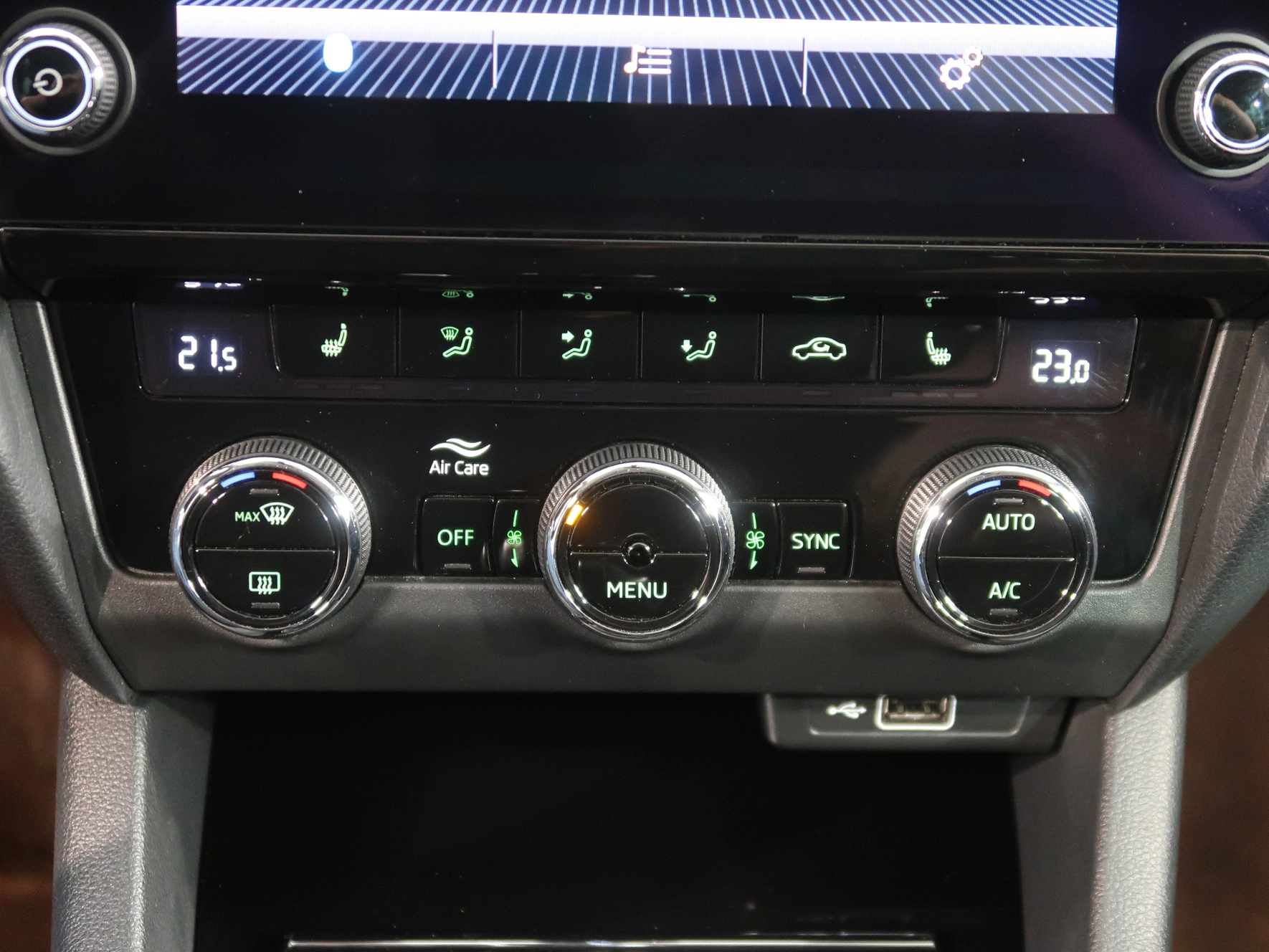 multifunkční volant, zadní stěrač s ostřikovačem, metalický lak, senzor světel, ukazatel vnější teploty, bezklíčové odemykání, kontrola tlaku v pneu, Isofix, loketní opěrka zadní, Maxi Dot, malý kožený paket, dělená zadní sedadla, startování tlačítkem, Parkovací asistent, Bluetooth, Start-stop systém, USB, ALU kola, LED denní svícení, Klimatizace automatická dvouzónová, Hlasové ovládání, Airbag řidiče a spolujezdce, Parkovací senzory vepředu, Front assist/Nouzové brzdění, Rezervní kolo, Airbag hlavový, Airbag boční, vyhřívaná sedadla, klimatizovaná přihrádka, airbag kolenní, Sun set, Vyhřívané trysky ostřikovače čel. okna, smart link, LED hlavní světlomety, autoalarm