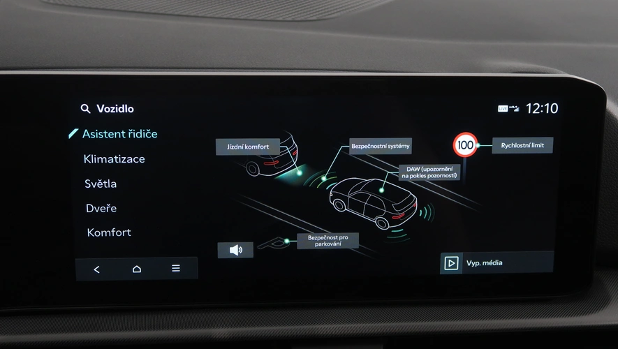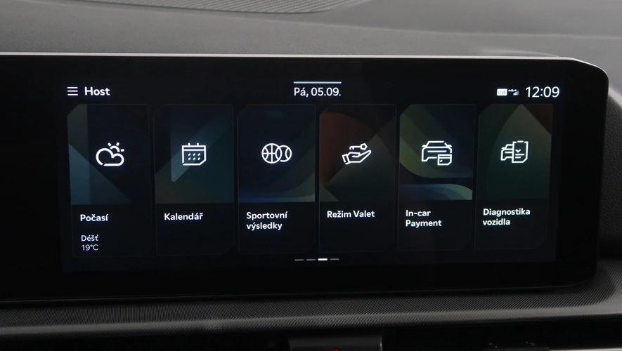 střešní nosič, dešťový senzor, multifunkční volant, zadní stěrač s ostřikovačem, senzor světel, ukazatel vnější teploty, bezklíčové odemykání, kontrola tlaku v pneu, Isofix, loketní opěrka zadní, Maxi Dot, malý kožený paket, startování tlačítkem, Adaptivní tempomat, El. sklopná zrcátka, Bluetooth, Start-stop systém, blind spot detect - kontrola mrtvého úhlu, parkovací kamera, USB, ALU kola, LED denní svícení, Klimatizace automatická dvouzónová, Digitální přístrojový štít, Volba jízdního režimu, Omezovač rychlosti, Hlasové ovládání, Airbag řidiče a spolujezdce, Parkovací senzory vepředu, Front assist/Nouzové brzdění, Parkovací brzda el. mech., Ambientní osvětlení, Rezervní kolo, Airbag hlavový, Airbag boční, vyhřívaná sedadla, el. vyhřívané přední sklo, Asistent rozjezdu do kopce, Řazení na volantu, lane assist - asistent kontroly jízdy v jízdním pruhu, Asistent dálkových světel, Adaptivní tempomat 210 km/h, Autohold, Bezdrátové nabíjení mobilního telefonu, Zatmavovací zrcátko - vnitřní, Sun set, Vyhřívané trysky ostřikovače čel. okna, smart link, vyhřívaný volant, LED hlavní světlomety, Nabíjecí USB vzadu, autoalarm, El. ovládané 5. dveře, vyhřívání sedadel vzadu, Bezdrátový Smartlink – zrcadlení mobilního telefonu, Airbag středový