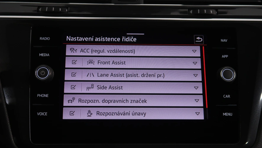 střešní nosič, dešťový senzor, multifunkční volant, zadní stěrač s ostřikovačem, metalický lak, senzor světel, ukazatel vnější teploty, kontrola tlaku v pneu, Isofix, loketní opěrka zadní, Maxi Dot, malý kožený paket, dělená zadní sedadla, Parkovací asistent, Adaptivní tempomat, El. sklopná zrcátka, Bluetooth, Start-stop systém, USB, ALU kola, LED denní svícení, Klimatizace automatická dvouzónová, Digitální přístrojový štít, Volba jízdního režimu, Omezovač rychlosti, Airbag řidiče a spolujezdce, Parkovací senzory vepředu, Front assist/Nouzové brzdění, Parkovací brzda el. mech., Ambientní osvětlení, Rezervní kolo, Airbag hlavový, Airbag boční, vyhřívaná sedadla, el. vyhřívané přední sklo, natáčecí světlomety, airbag kolenní, Asistent rozjezdu do kopce, Řazení na volantu, lane assist - asistent kontroly jízdy v jízdním pruhu, Asistent dálkových světel, Asistent rozpoznání únavy řidiče, Adaptivní tempomat 210 km/h, Autohold, Zatmavovací zrcátko - vnitřní, Sun set, Vyhřívané trysky ostřikovače čel. okna, smart link, vyhřívaný volant, LED hlavní světlomety, Nabíjecí USB vzadu, autoalarm, sportovní paket, sportovní sedadla, El. ovládané 5. dveře, Nouzové volání, Rozpoznání dopravních značek, airbagy boční zadní, Klimatizace automatická vícezónová, Bezdrátový Smartlink – zrcadlení mobilního telefonu, Zásuvka 230V, Asistent jízdy s přívěsem, pohon všech kol