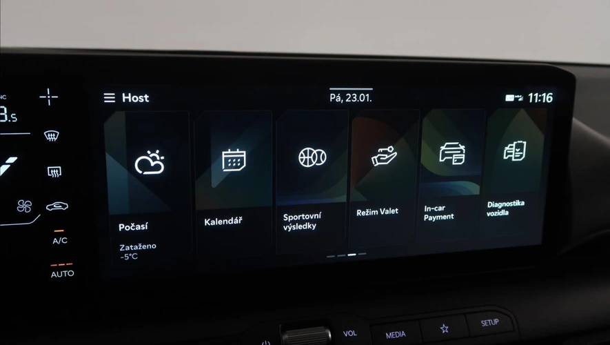 Digitální příjem rádia (DAB), Digitální přístrojový štít, Dvouzónová klimatizace, El. okna, El. sklopná zrcátka, Elektronická ruční brzda, Hands free, Hlasové ovládání palubního počítače, Hlídání jízdního pruhu, Hlídání mrtvého úhlu, Hlídání provozu při couvání (RCTA), Isofix, Litá kola, Multifunkční volant, Nastavitelný volant, Nouzové brzdění (PEBS), Originál autorádio, Palubní počítač, Parkovací kamera, Parkovací senzory přední, Parkovací senzory zadní, Posilovač řízení, Protiprokluzový systém kol (ASR), Přední světla LED, Satelitní navigace, Senzor tlaku v pneumatikách, Sledování únavy řidiče, Stabilizace podvozku (ESP), Start-stop systém, Startování tlačítkem, Ukazatel rychlostního limitu (SLIF), Venkovní teploměr, Volba jízdního režimu, Vyhřívaná sedadla, Vyhřívaný volant, Výsuvné opěrky hlav, Výškově nastavitelná sedadla, Zadní loketní opěrka, Zadní stěrač, Zadní světla LED, Zatmavená zadní skla, Záruka, 7 rychlostních stupňů, ABS, USB, Aut. zabrždění v kopci, Plní 'EURO VI', Tónovaná skla, Přední pohon, 7x airbag, Vnitřní teploměr, Malý kožený paket