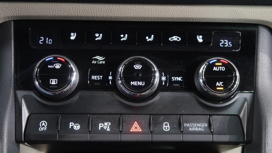 dešťový senzor, multifunkční volant, zadní stěrač s ostřikovačem, metalický lak, senzor světel, ukazatel vnější teploty, bezklíčové odemykání, kontrola tlaku v pneu, Isofix, loketní opěrka zadní, Maxi Dot, malý kožený paket, dělená zadní sedadla, startování tlačítkem, Parkovací asistent, Adaptivní tempomat, El. sklopná zrcátka, Bluetooth, Start-stop systém, blind spot detect - kontrola mrtvého úhlu, parkovací kamera, USB, ALU kola, LED denní svícení, Klimatizace automatická dvouzónová, Digitální přístrojový štít, Asistent vyparkování, Volba jízdního režimu, Omezovač rychlosti, Hlasové ovládání, Airbag řidiče a spolujezdce, Parkovací senzory vepředu, Front assist/Nouzové brzdění, Parkovací brzda el. mech., Ambientní osvětlení, Rezervní kolo, Airbag hlavový, Airbag boční, vyhřívaná sedadla, el. vyhřívané přední sklo, natáčecí světlomety, klimatizovaná přihrádka, airbag kolenní, Asistent rozjezdu do kopce, Řazení na volantu, lane assist - asistent kontroly jízdy v jízdním pruhu, Asistent dálkových světel, Asistent rozpoznání únavy řidiče, Adaptivní tempomat 210 km/h, Autohold, Bezdrátové nabíjení mobilního telefonu, Zatmavovací zrcátko - vnitřní, Sun set, Vyhřívané trysky ostřikovače čel. okna, smart link, vyhřívaný volant, LED hlavní světlomety, Nabíjecí USB vzadu, autoalarm, sound systém s více reproduktory, El. ovládaná přední sedadla, El. ovládané 5. dveře, Virtuální pedál, Adaptivní podvozek/ DCC, Nouzové volání, Ventilovaná sedadla, Rozpoznání dopravních značek, ostřikovače světlometů, airbagy boční zadní, Roletky zadních oken, vyhřívání sedadel vzadu, tažné zařízení, Area View 360 degree, MATRIX LED světlomety, Tažné zařízení sklopné, Klimatizace automatická vícezónová, Bezdrátový Smartlink – zrcadlení mobilního telefonu, Zásuvka 230V, Paket pro spaní, Asistent jízdy s přívěsem, pohon všech kol, Imobilizér
