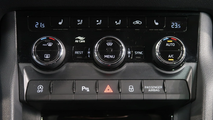 nastavitelný volant, střešní nosič, dešťový senzor, multifunkční volant, zadní stěrač s ostřikovačem, metalický lak, senzor světel, ukazatel vnější teploty, bezklíčové odemykání, kontrola tlaku v pneu, Isofix, loketní opěrka zadní, Maxi Dot, malý kožený paket, dělená zadní sedadla, startování tlačítkem, Adaptivní tempomat, El. sklopná zrcátka, Bluetooth, Start-stop systém, parkovací kamera, USB, ALU kola, LED denní svícení, Klimatizace automatická dvouzónová, Digitální přístrojový štít, Volba jízdního režimu, Omezovač rychlosti, Hlasové ovládání, Airbag řidiče a spolujezdce, Parkovací senzory vepředu, Front assist/Nouzové brzdění, Parkovací brzda el. mech., Rezervní kolo, Airbag hlavový, Airbag boční, vyhřívaná sedadla, el. vyhřívané přední sklo, natáčecí světlomety, airbag kolenní, Asistent rozjezdu do kopce, Řazení na volantu, Asistent dálkových světel, Asistent rozpoznání únavy řidiče, Adaptivní tempomat 210 km/h, Autohold, Zatmavovací zrcátko - vnitřní, Sun set, Vyhřívané trysky ostřikovače čel. okna, smart link, vyhřívaný volant, LED hlavní světlomety, Nabíjecí USB vzadu, autoalarm, El. ovládané 5. dveře, Virtuální pedál, Nouzové volání, ostřikovače světlometů, airbagy boční zadní, tažné zařízení, MATRIX LED světlomety, Tažné zařízení sklopné, Bezdrátový Smartlink – zrcadlení mobilního telefonu, Zásuvka 230V