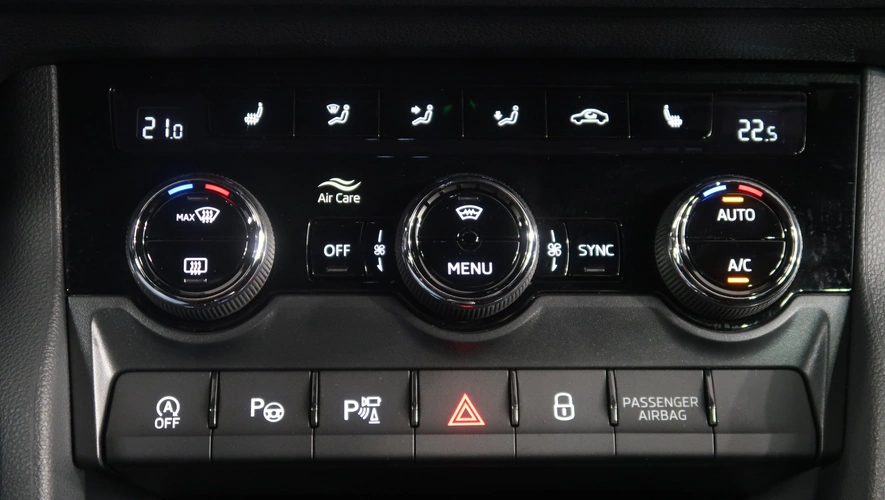 dešťový senzor, multifunkční volant, zadní stěrač s ostřikovačem, senzor světel, ukazatel vnější teploty, bezklíčové odemykání, kontrola tlaku v pneu, Isofix, loketní opěrka zadní, Maxi Dot, malý kožený paket, dělená zadní sedadla, startování tlačítkem, Parkovací asistent, Adaptivní tempomat, El. sklopná zrcátka, Bluetooth, Start-stop systém, blind spot detect - kontrola mrtvého úhlu, parkovací kamera, USB, ALU kola, LED denní svícení, Klimatizace automatická dvouzónová, Digitální přístrojový štít, Asistent vyparkování, Volba jízdního režimu, Omezovač rychlosti, Hlasové ovládání, Airbag řidiče a spolujezdce, Parkovací senzory vepředu, Front assist/Nouzové brzdění, Parkovací brzda el. mech., Ambientní osvětlení, Rezervní kolo, Airbag hlavový, Airbag boční, vyhřívaná sedadla, el. vyhřívané přední sklo, natáčecí světlomety, airbag kolenní, Asistent rozjezdu do kopce, Řazení na volantu, lane assist - asistent kontroly jízdy v jízdním pruhu, Asistent dálkových světel, Asistent rozpoznání únavy řidiče, Adaptivní tempomat 210 km/h, Autohold, Bezdrátové nabíjení mobilního telefonu, Zatmavovací zrcátko - vnitřní, Sun set, Vyhřívané trysky ostřikovače čel. okna, smart link, vyhřívaný volant, LED hlavní světlomety, Nabíjecí USB vzadu, autoalarm, sportovní paket, sportovní sedadla, sound systém s více reproduktory, El. ovládané 5. dveře, Virtuální pedál, Adaptivní podvozek/ DCC, Nouzové volání, Rozpoznání dopravních značek, ostřikovače světlometů, airbagy boční zadní, vyhřívání sedadel vzadu, Area View 360 degree, Bezdrátový Smartlink – zrcadlení mobilního telefonu, pohon všech kol