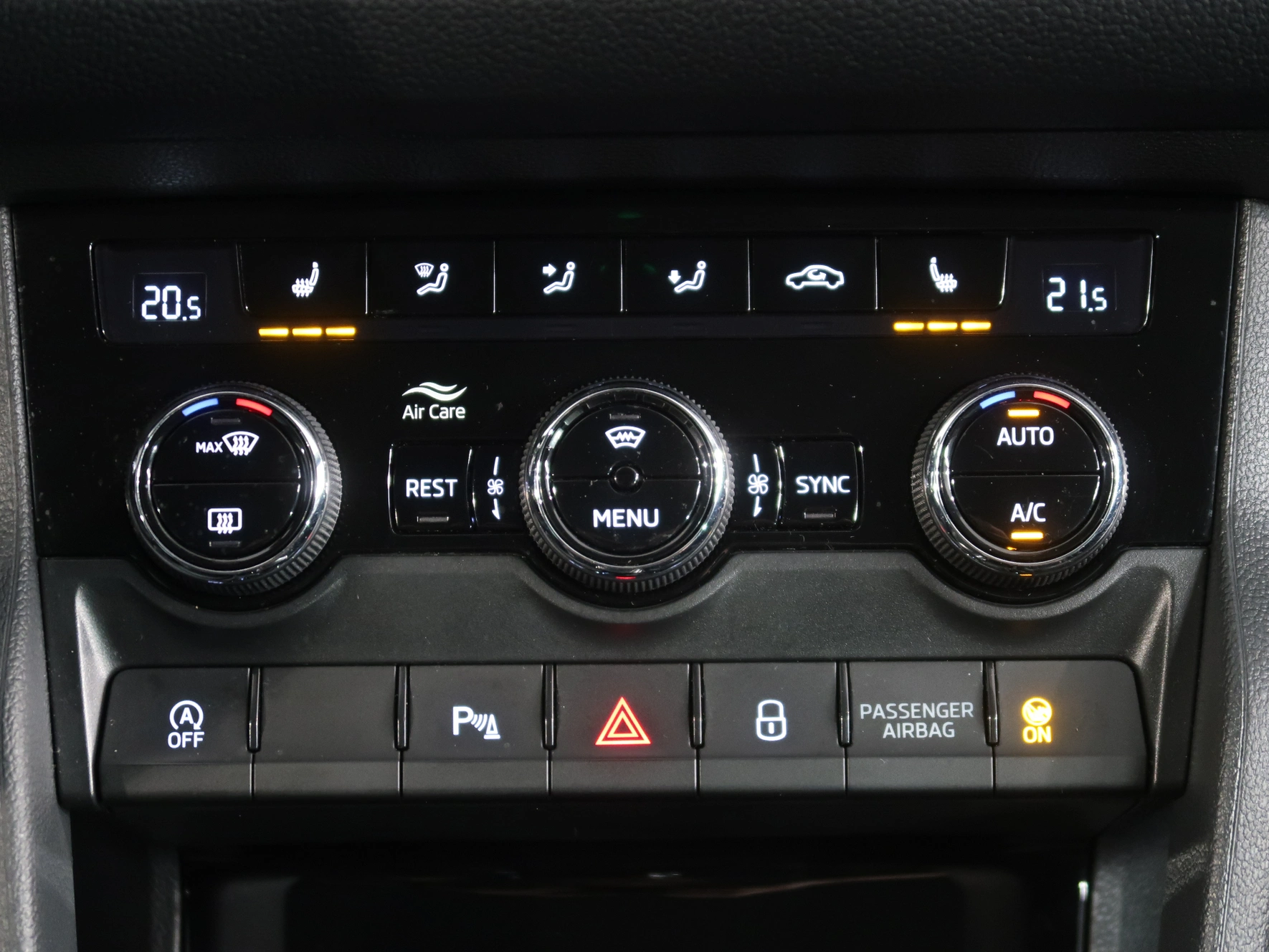 střešní nosič, dešťový senzor, multifunkční volant, zadní stěrač s ostřikovačem, metalický lak, senzor světel, ukazatel vnější teploty, bezklíčové odemykání, kontrola tlaku v pneu, Isofix, loketní opěrka zadní, Maxi Dot, malý kožený paket, dělená zadní sedadla, startování tlačítkem, El. sklopná zrcátka, Bluetooth, Start-stop systém, parkovací kamera, USB, ALU kola, LED denní svícení, Klimatizace automatická dvouzónová, Digitální přístrojový štít, Volba jízdního režimu, Omezovač rychlosti, Hlasové ovládání, Airbag řidiče a spolujezdce, Parkovací senzory vepředu, Front assist/Nouzové brzdění, Parkovací brzda el. mech., Rezervní kolo, Airbag hlavový, Airbag boční, vyhřívaná sedadla, el. vyhřívané přední sklo, natáčecí světlomety, airbag kolenní, Asistent rozjezdu do kopce, Řazení na volantu, Asistent rozpoznání únavy řidiče, Adaptivní tempomat 210 km/h, Autohold, Sun set, smart link, vyhřívaný volant, LED hlavní světlomety, Nabíjecí USB vzadu, El. ovládaná přední sedadla, El. ovládané 5. dveře, Virtuální pedál, Nouzové volání, Zatmavovací zrcátko - všechny, ostřikovače světlometů, tažné zařízení, MATRIX LED světlomety, Tažné zařízení sklopné, Bezdrátový Smartlink – zrcadlení mobilního telefonu, Zásuvka 230V