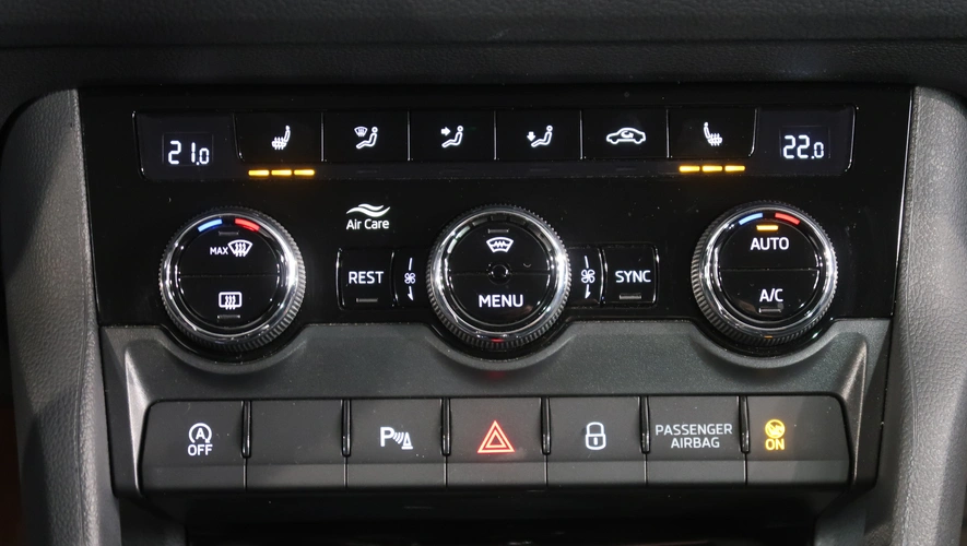 střešní nosič, dešťový senzor, multifunkční volant, zadní stěrač s ostřikovačem, metalický lak, senzor světel, ukazatel vnější teploty, bezklíčové odemykání, kontrola tlaku v pneu, Isofix, loketní opěrka zadní, Maxi Dot, malý kožený paket, dělená zadní sedadla, startování tlačítkem, Parkovací asistent, El. sklopná zrcátka, Bluetooth, Start-stop systém, parkovací kamera, USB, ALU kola, LED denní svícení, Klimatizace automatická dvouzónová, Digitální přístrojový štít, Volba jízdního režimu, Omezovač rychlosti, Hlasové ovládání, Parkovací senzory vepředu, Front assist/Nouzové brzdění, Parkovací brzda el. mech., vyhřívaná sedadla, el. vyhřívané přední sklo, natáčecí světlomety, airbag kolenní, Asistent rozjezdu do kopce, Řazení na volantu, Asistent dálkových světel, Adaptivní tempomat 210 km/h, Autohold, Zatmavovací zrcátko - vnitřní, Sun set, smart link, vyhřívaný volant, LED hlavní světlomety, Nabíjecí USB vzadu, sound systém s více reproduktory, El. ovládaná přední sedadla, El. ovládané 5. dveře, Virtuální pedál, Nouzové volání, Zatmavovací zrcátko - všechny, tažné zařízení, MATRIX LED světlomety, Tažné zařízení sklopné, Klimatizace automatická vícezónová, Bezdrátový Smartlink – zrcadlení mobilního telefonu, pohon všech kol, Airbag středový