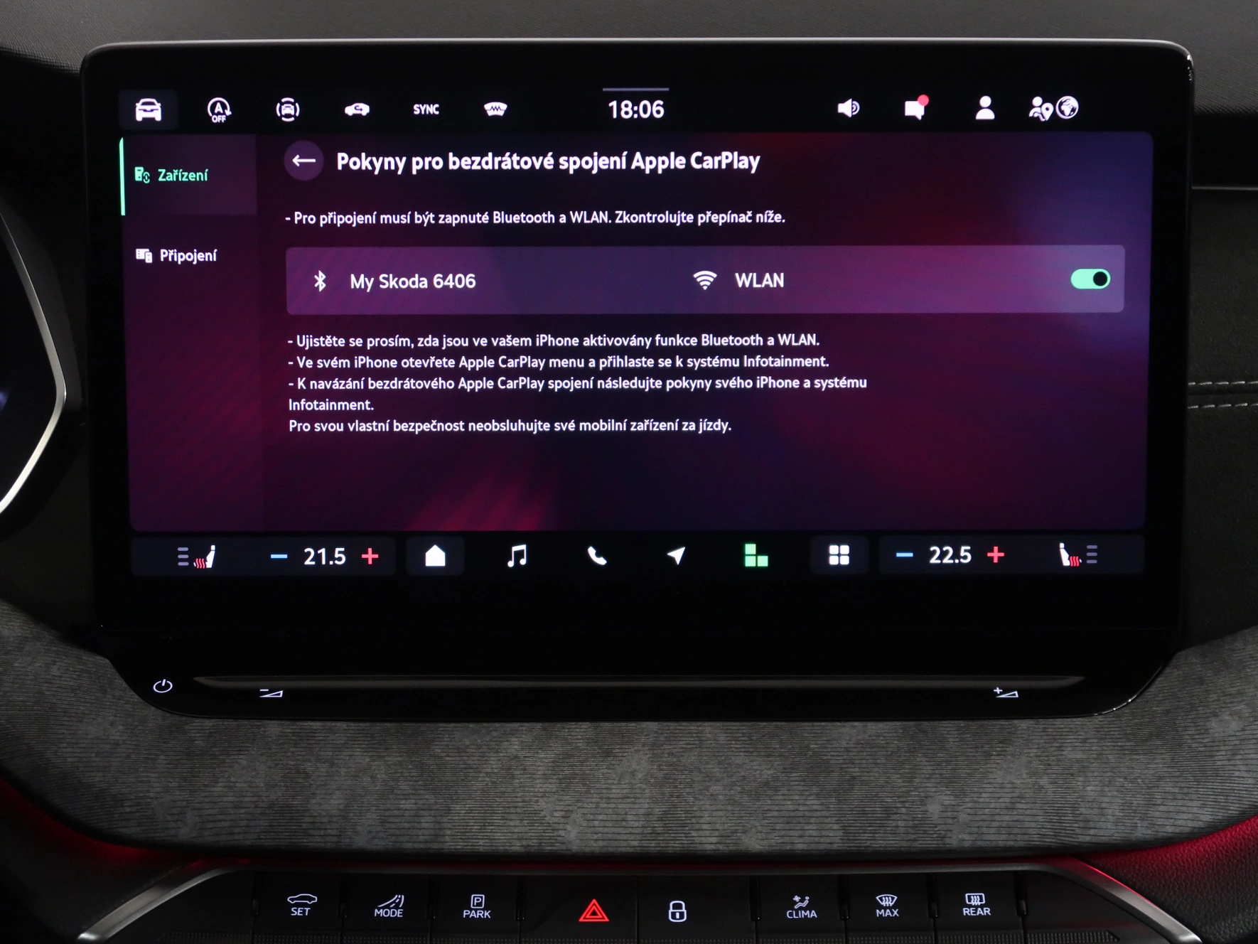 | Bezdrátový Smartlink – zrcadlení mobilního telefonu | Ano |