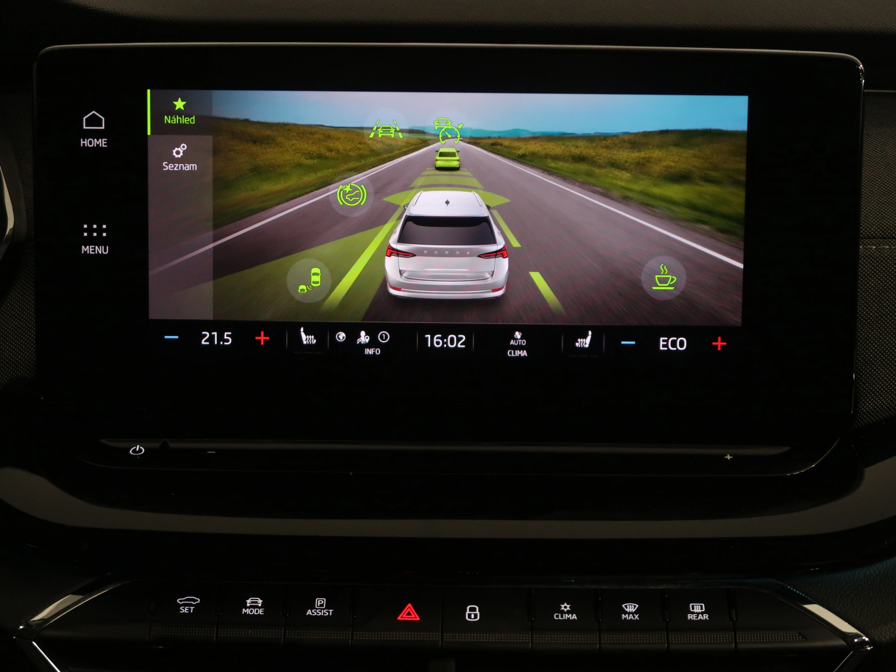 multifunkční volant, zadní stěrač s ostřikovačem, metalický lak, senzor světel, ukazatel vnější teploty, bezklíčové odemykání, kontrola tlaku v pneu, Isofix, loketní opěrka zadní, Maxi Dot, malý kožený paket, dělená zadní sedadla, startování tlačítkem, El. sklopná zrcátka, Bluetooth, Start-stop systém, blind spot detect - kontrola mrtvého úhlu, parkovací kamera, USB, ALU kola, LED denní svícení, Klimatizace automatická dvouzónová, Digitální přístrojový štít, Asistent vyparkování, Volba jízdního režimu, Omezovač rychlosti, Hlasové ovládání, Airbag řidiče a spolujezdce, Parkovací senzory vepředu, Front assist/Nouzové brzdění, Parkovací brzda el. mech., Ambientní osvětlení, Airbag hlavový, Airbag boční, vyhřívaná sedadla, el. vyhřívané přední sklo, natáčecí světlomety, klimatizovaná přihrádka, airbag kolenní, Asistent rozjezdu do kopce, Řazení na volantu, lane assist - asistent kontroly jízdy v jízdním pruhu, Asistent dálkových světel, Asistent rozpoznání únavy řidiče, Adaptivní tempomat 210 km/h, Autohold, Zatmavovací zrcátko - vnitřní, Vyhřívané trysky ostřikovače čel. okna, smart link, LED hlavní světlomety, Nabíjecí USB vzadu, Nouzové volání, Zatmavovací zrcátko - všechny, ostřikovače světlometů, MATRIX LED světlomety, Bezdrátový Smartlink – zrcadlení mobilního telefonu, ISOFIX na sedadle spolujezdce