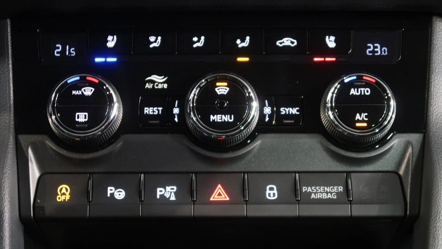 střešní nosič, dešťový senzor, multifunkční volant, zadní stěrač s ostřikovačem, metalický lak, senzor světel, ukazatel vnější teploty, bezklíčové odemykání, kontrola tlaku v pneu, Isofix, loketní opěrka zadní, Maxi Dot, malý kožený paket, dělená zadní sedadla, startování tlačítkem, Parkovací asistent, El. sklopná zrcátka, Bluetooth, Start-stop systém, blind spot detect - kontrola mrtvého úhlu, parkovací kamera, USB, ALU kola, LED denní svícení, Klimatizace automatická dvouzónová, Digitální přístrojový štít, Asistent vyparkování, Volba jízdního režimu, Omezovač rychlosti, Hlasové ovládání, Airbag řidiče a spolujezdce, Parkovací senzory vepředu, Front assist/Nouzové brzdění, Parkovací brzda el. mech., Ambientní osvětlení, Rezervní kolo, Airbag hlavový, Airbag boční, vyhřívaná sedadla, el. vyhřívané přední sklo, natáčecí světlomety, airbag kolenní, Asistent rozjezdu do kopce, Řazení na volantu, lane assist - asistent kontroly jízdy v jízdním pruhu, Asistent dálkových světel, Asistent rozpoznání únavy řidiče, Adaptivní tempomat 210 km/h, Autohold, Zatmavovací zrcátko - vnitřní, Sun set, smart link, vyhřívaný volant, LED hlavní světlomety, Nabíjecí USB vzadu, sound systém s více reproduktory, El. ovládaná přední sedadla, El. ovládané 5. dveře, Virtuální pedál, Adaptivní podvozek/ DCC, Nouzové volání, Ventilovaná sedadla, Zatmavovací zrcátko - všechny, Rozpoznání dopravních značek, ostřikovače světlometů, vyhřívání sedadel vzadu, MATRIX LED světlomety, Bezdrátový Smartlink – zrcadlení mobilního telefonu, Zásuvka 230V, pohon všech kol